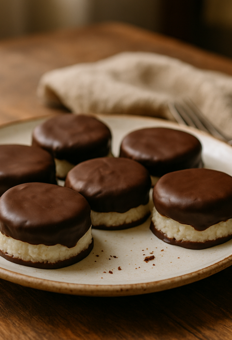 Mixa havregrynen till ett fint mjöl. Blanda i resten av de torra ingredienserna. Pressa i lite citronsaft och tärna ner smöret. Mixa till en smulig massa. Tillsätt mjölken gradvis och rör ihop till en smidig deg som går att kavla ut. Kavla ut degen till en platta som är några millimeter tjock och stansa ut små rundlar. Lägg dem på en plåt och nagga dem med en gaffel.